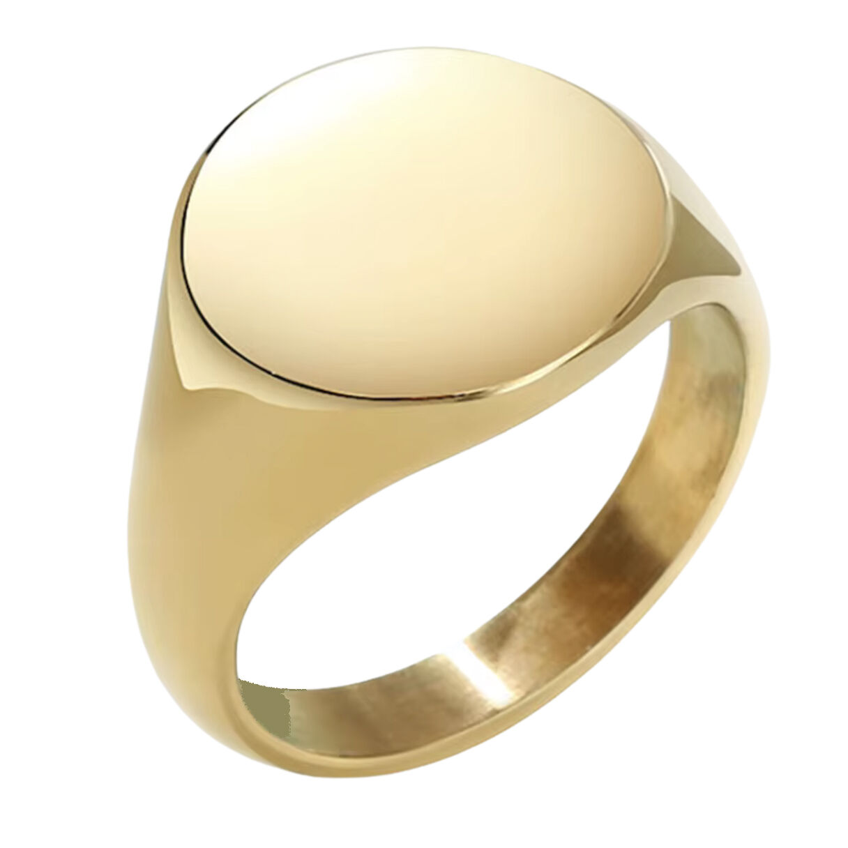 Boarders Round Signet Gold Platted Stainless Steel Ring [Size: 6]