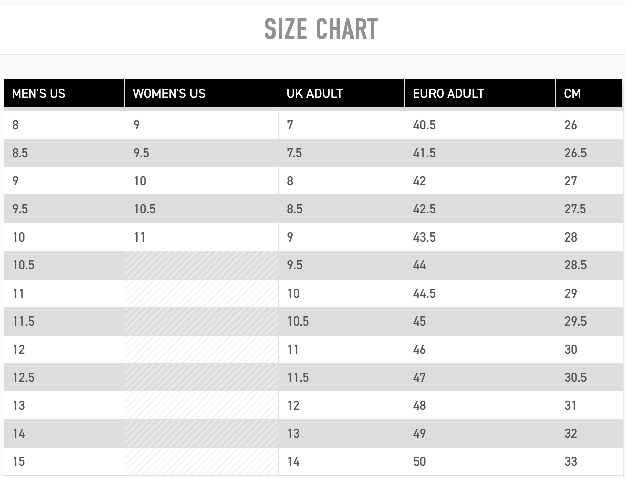 - US Sizes Sent