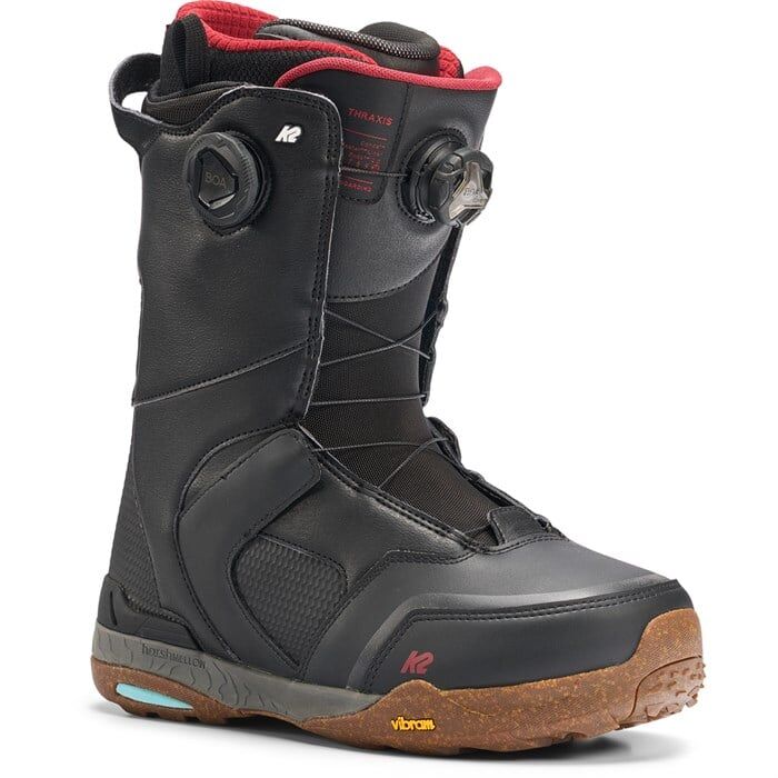 The K2 Thraxis Snowboard Boots deliver maximum-strength performance for riders who head to the mountain with a point to prove. These powerhouse boots feature a confidence-inspiring 10/10 flex rating paired with dual BOA systems for precise, locked-in responsiveness during aggressive descents. Intuition Pro Foam liners provide custom comfort while Vibram outsoles with Harshmellow damping absorb impact without compromising board feel. One of the best in the business for advanced riders who demand uncompromising power and precision.